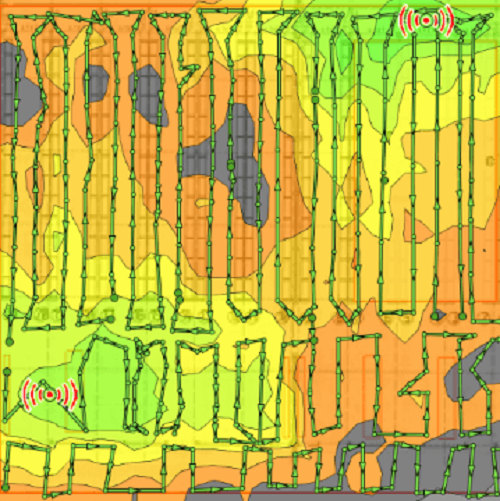 Com base nos seus planos e nos nossos resultados de medição, criamos a documentação para a iluminação. Esta contém representações gráficas de todos os parâmetros WLAN, que também podem ser utilizados para a configuração e otimização subsequentes dos seus pontos de acesso. Criamos este mapa de calor utilizando o software Ekahau Site Survey, entre outras coisas.